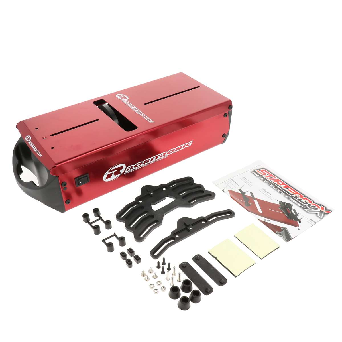 Potenza mostruosa per Truggy e Buggy in scala 1/8. Il Robitronic Starterbox è molto elegante, funzionale e potente. Lo Starterbox utilizza due potenti motori da 775 per produrre la massima coppia per un avviamento più facile su una vasta gamma di motori. Il box è dotato di connettori precablati per una batteria da 12 V o due pacchi batteria da 7,2 V. Pratico interruttore on/off.